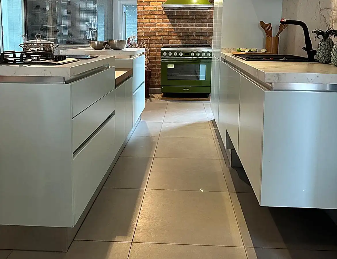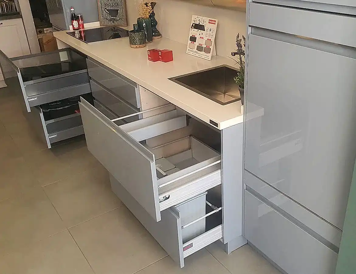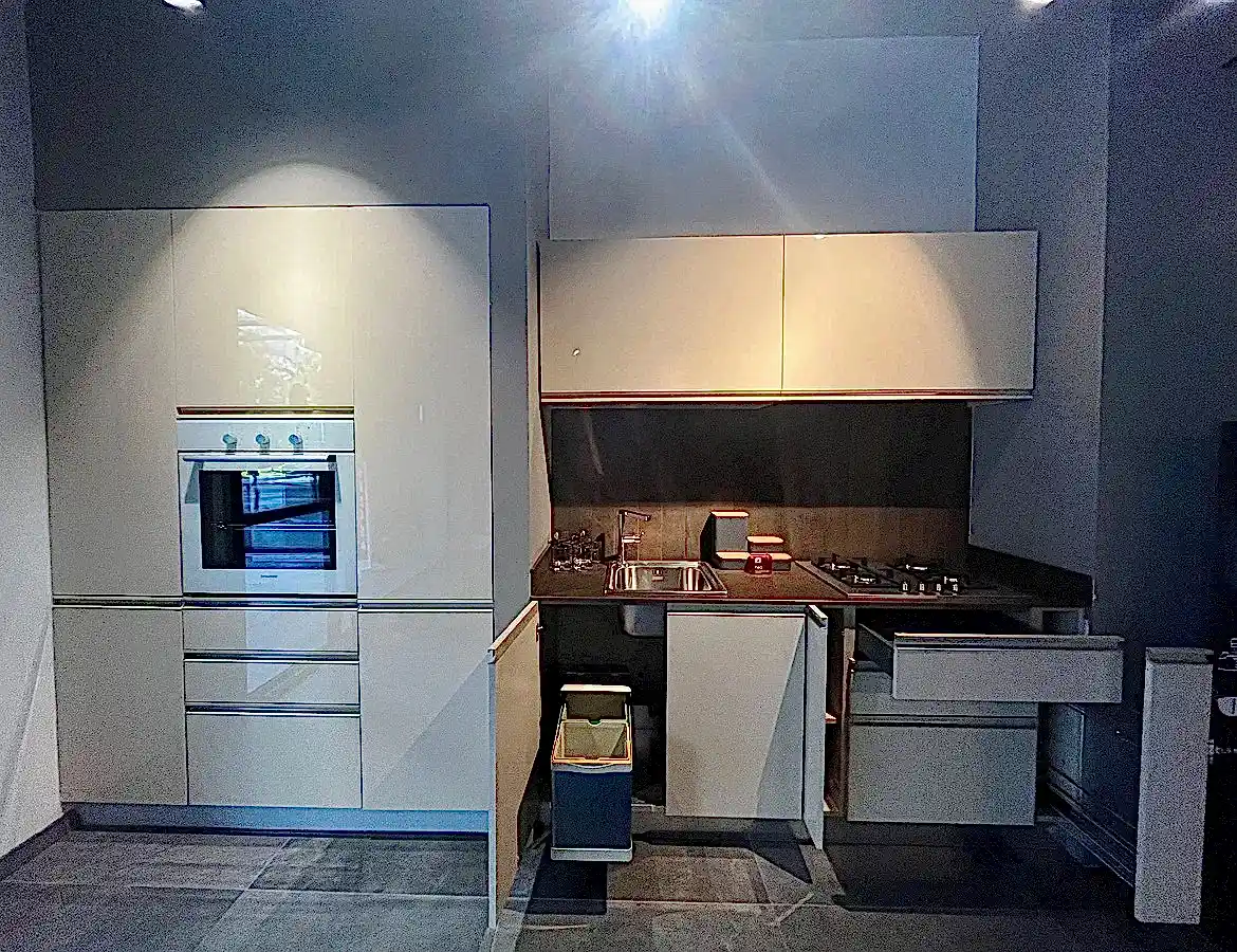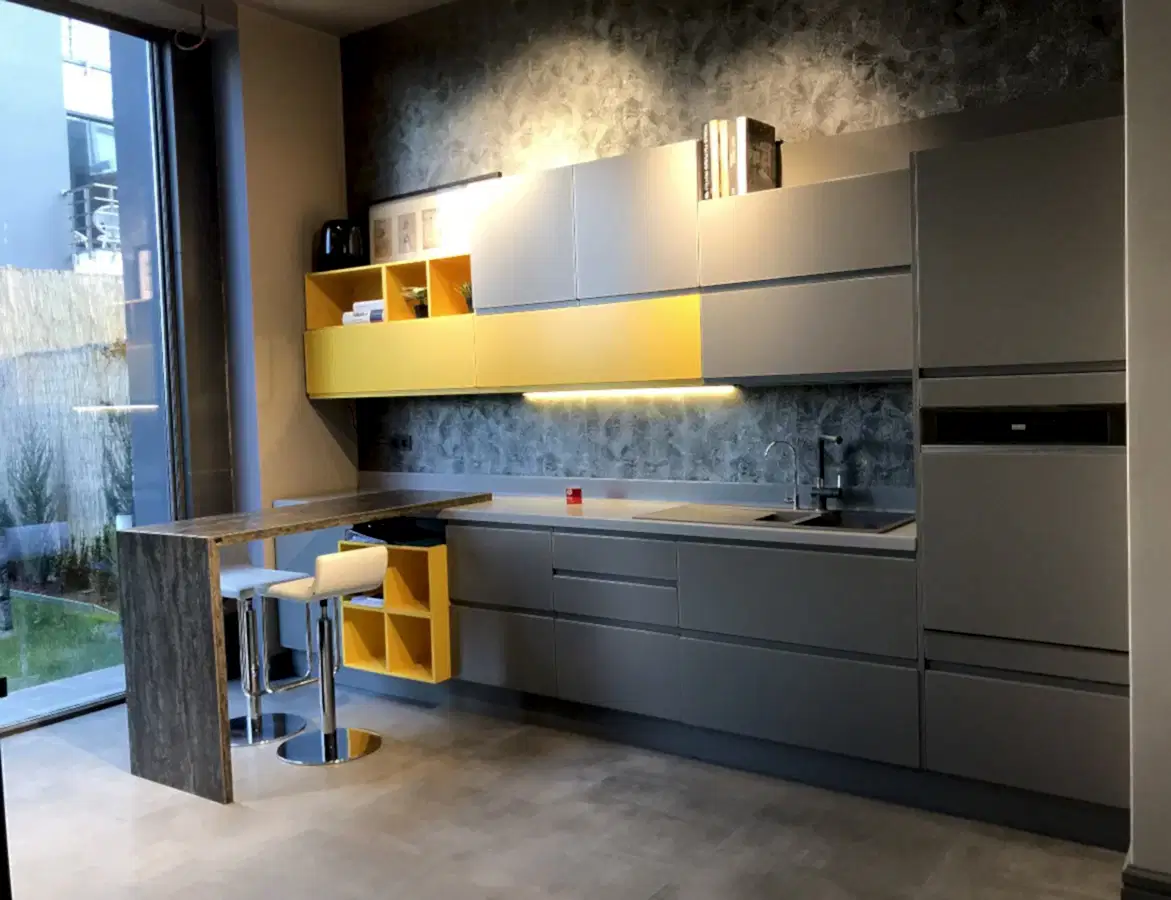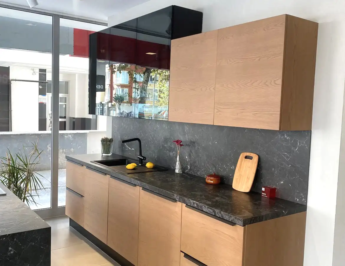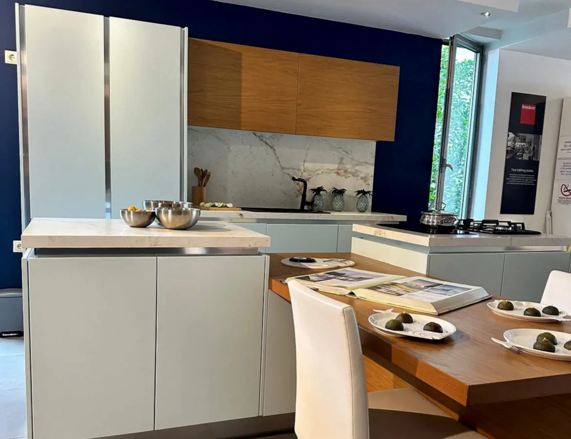 Tezgah ve Cihazlar: Silestone Tezgah , Duvar kaplaması, Franke /Evye, Batarya, Franke /Tam ankastre bulaşık makinası fiyata dahildir.