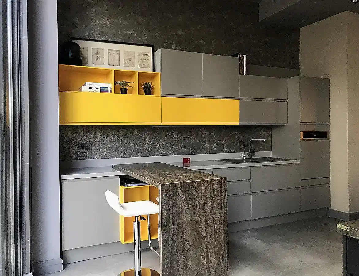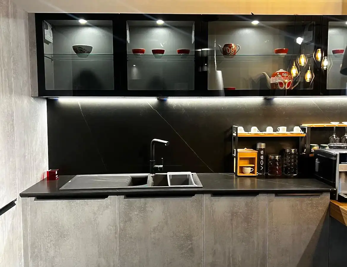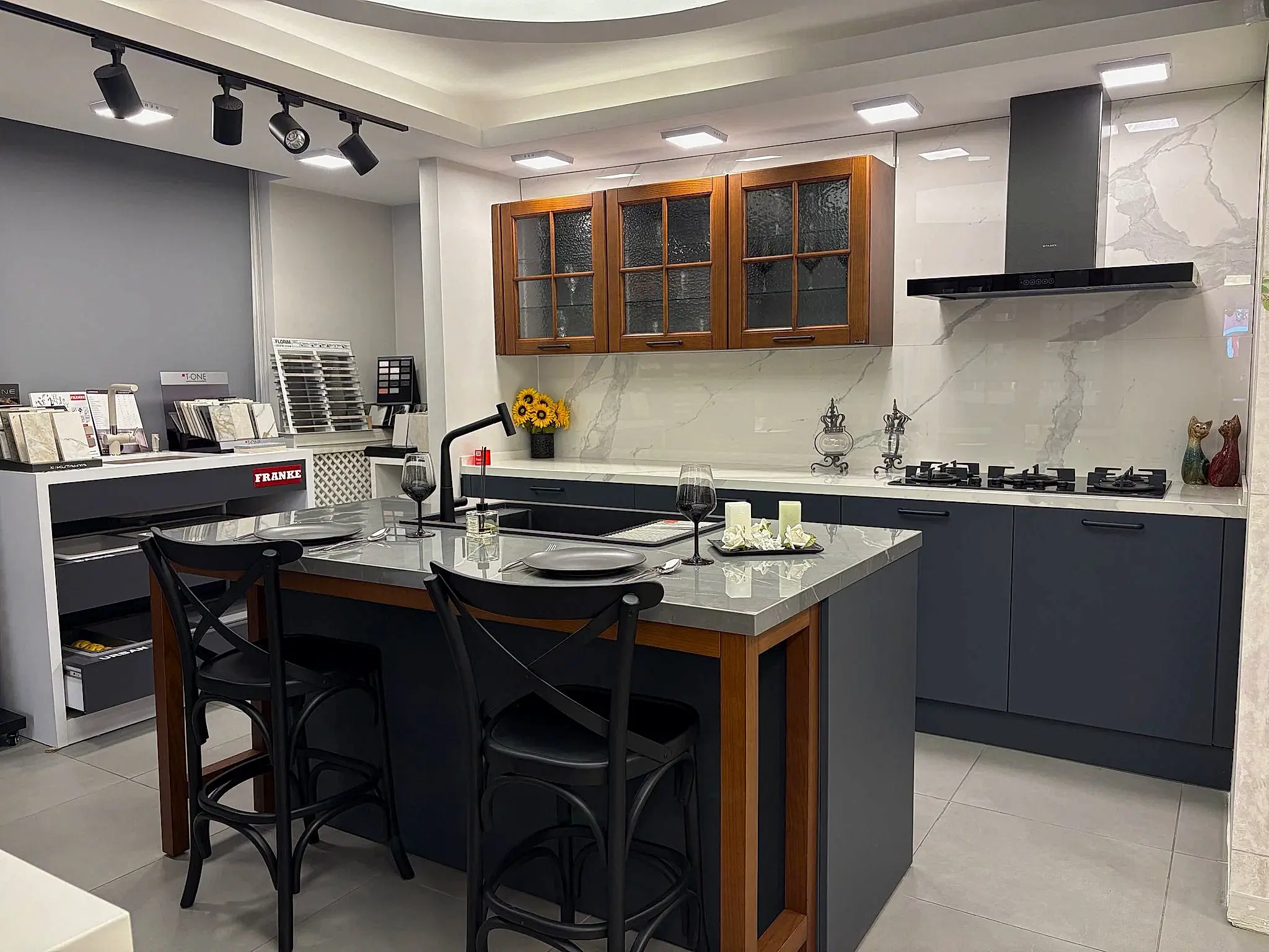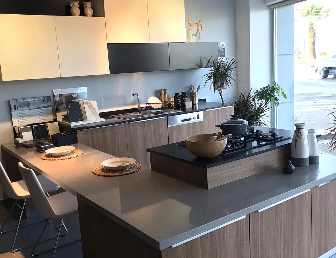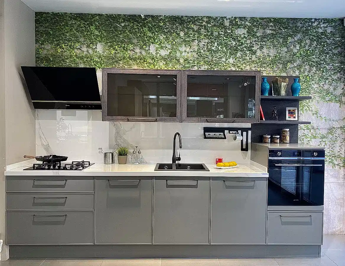 Tezgah ve Cihazlar: Silestone Tezgah , Duvar kaplaması, Franke /Evye, Batarya, Franke /Tam ankastre bulaşık makinası fiyata dahildir.