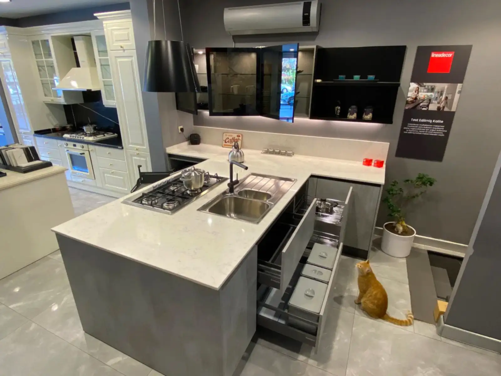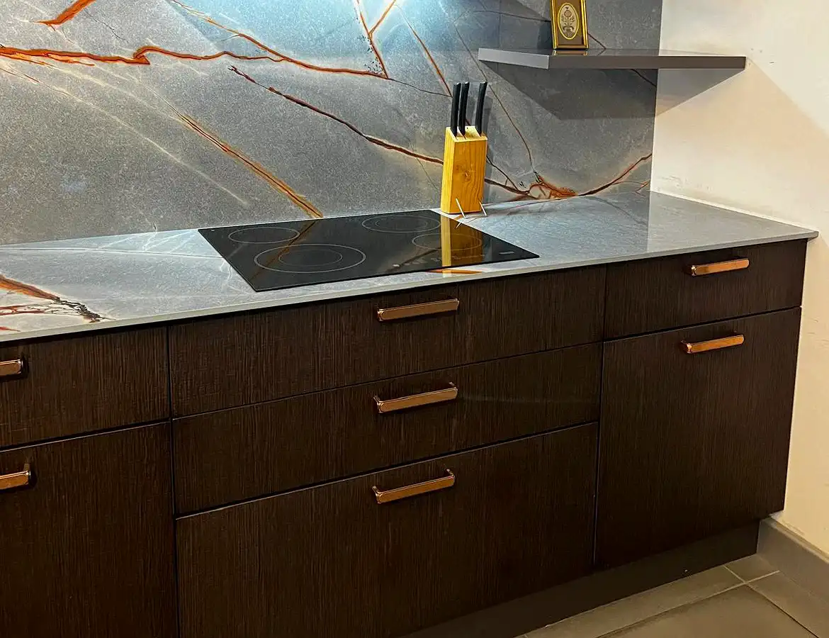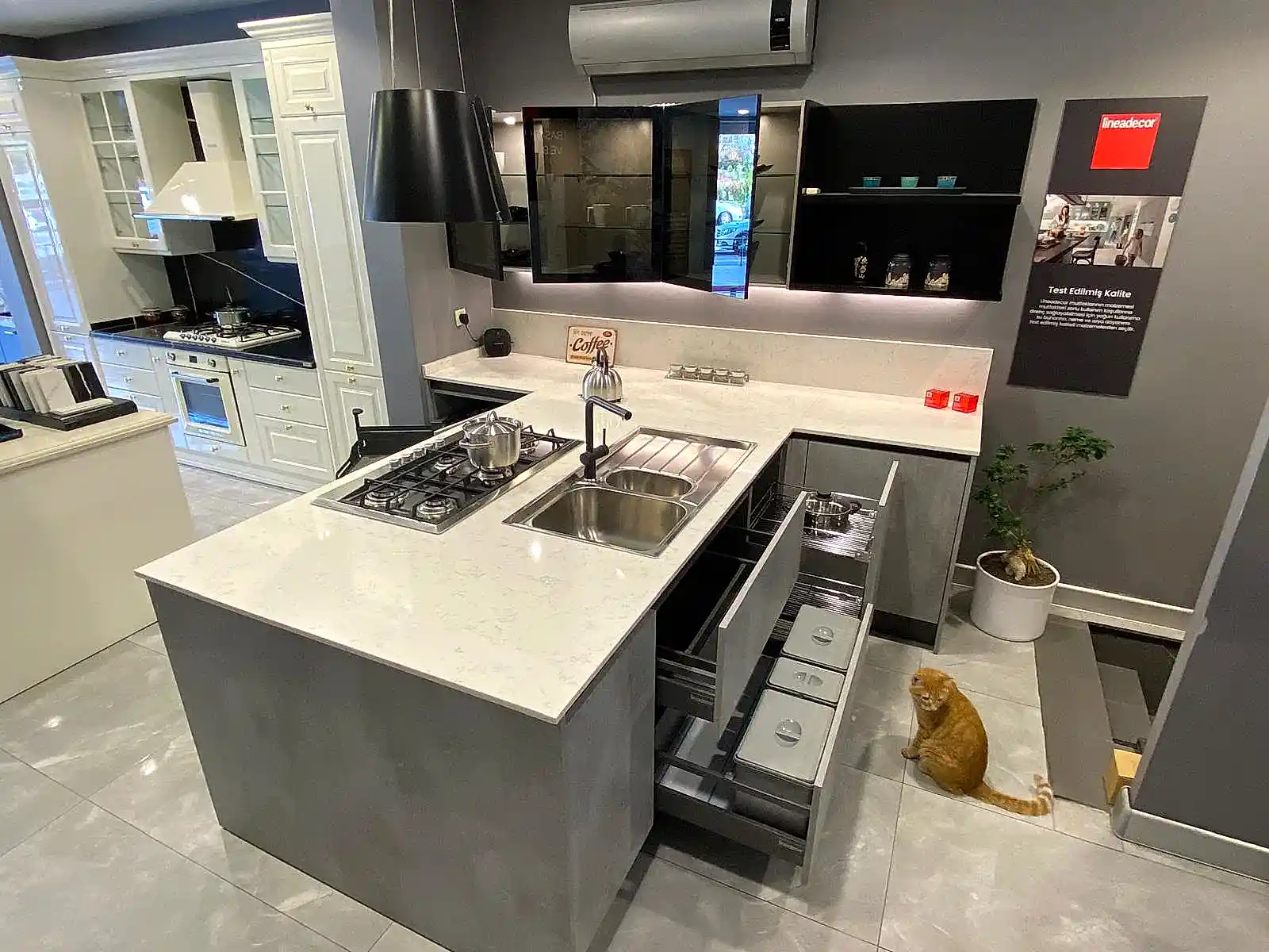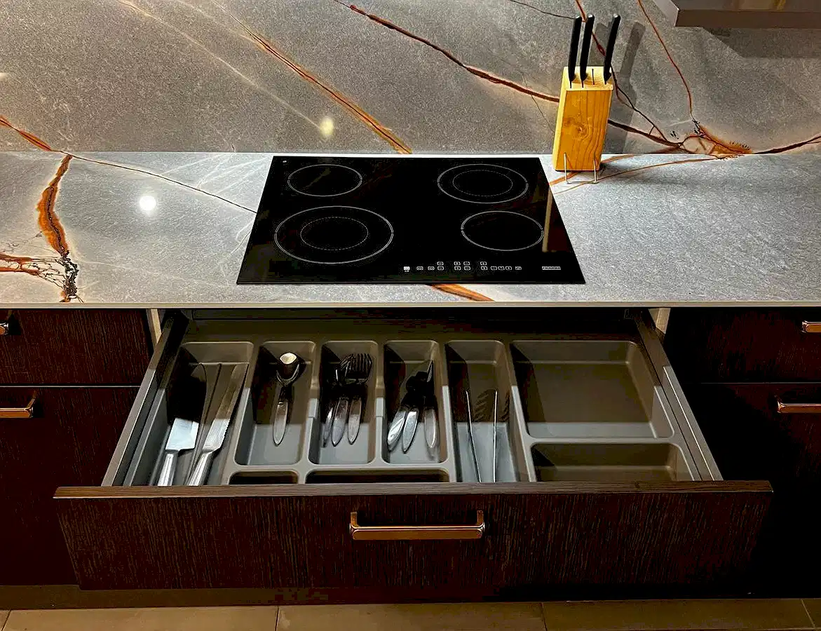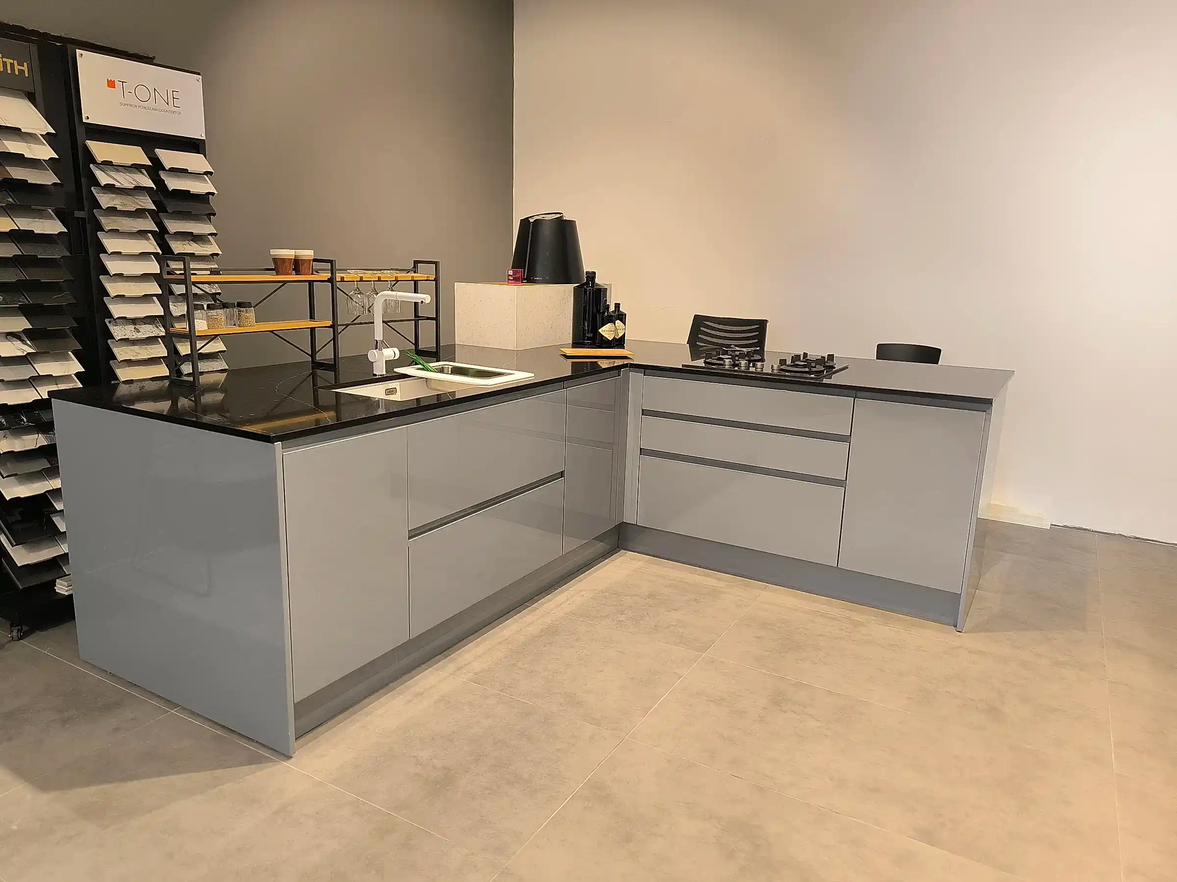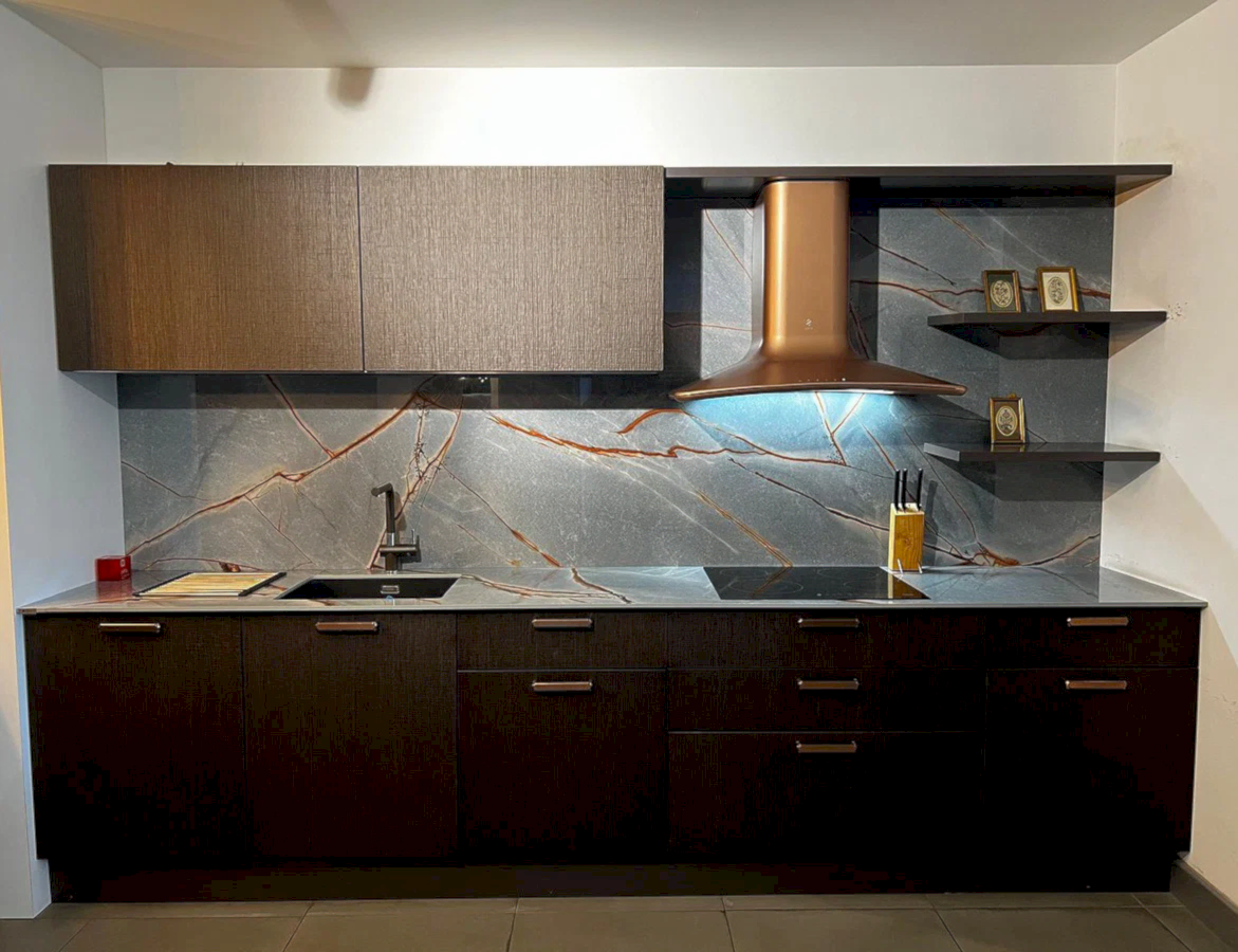 Tezgah ve Cihazlar: Silestone Tezgah , Duvar kaplaması, Franke /Evye, Batarya, Franke /Tam ankastre bulaşık makinası fiyata dahildir.