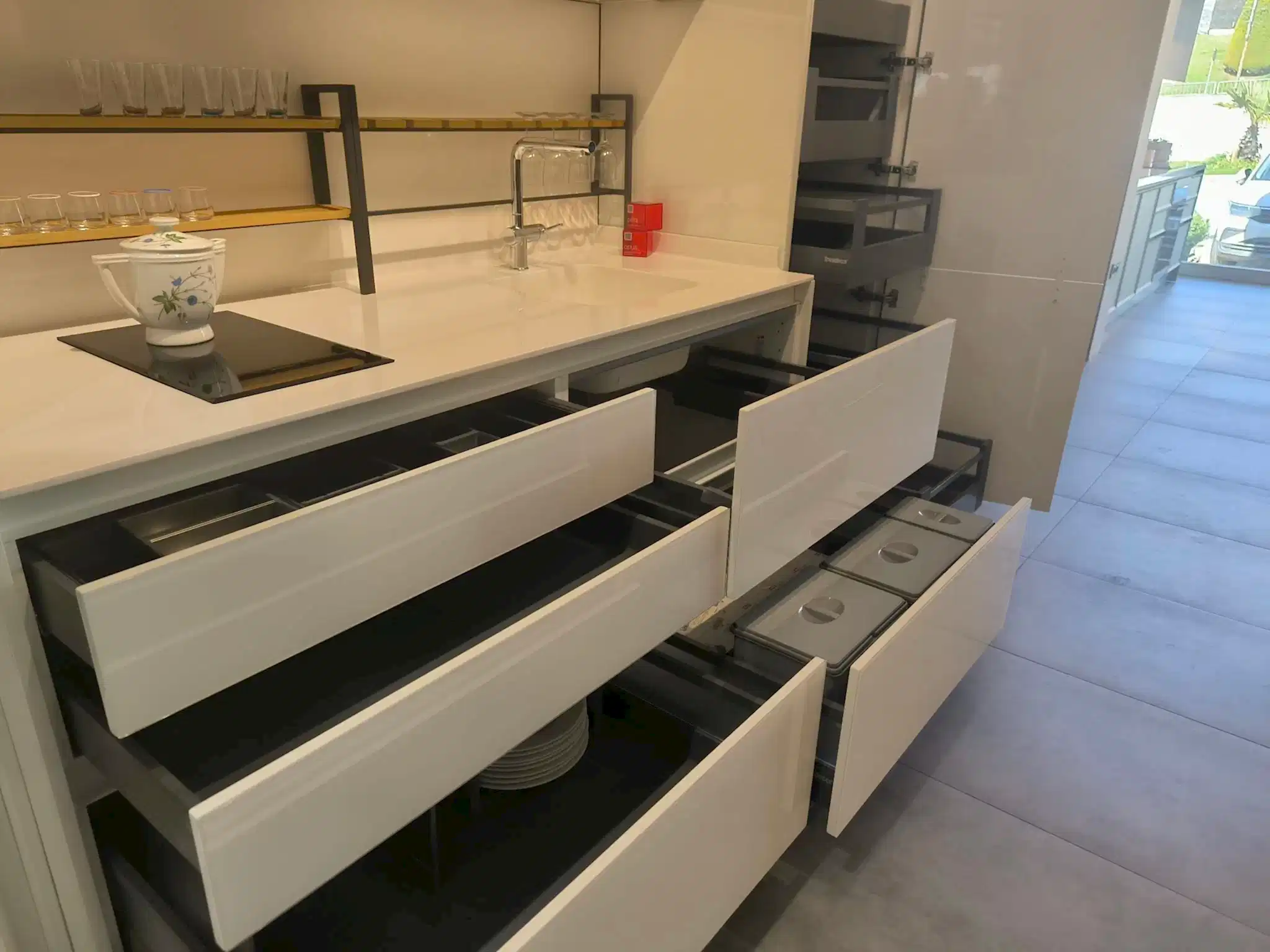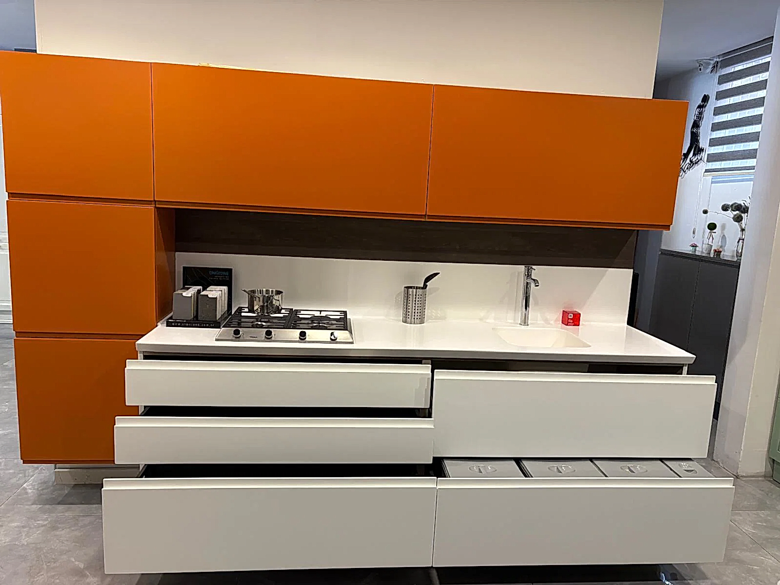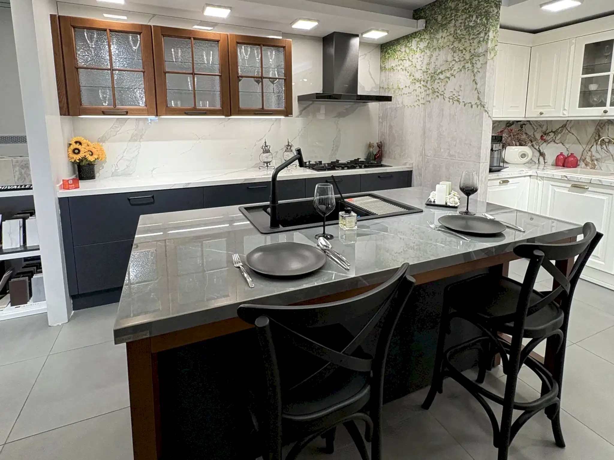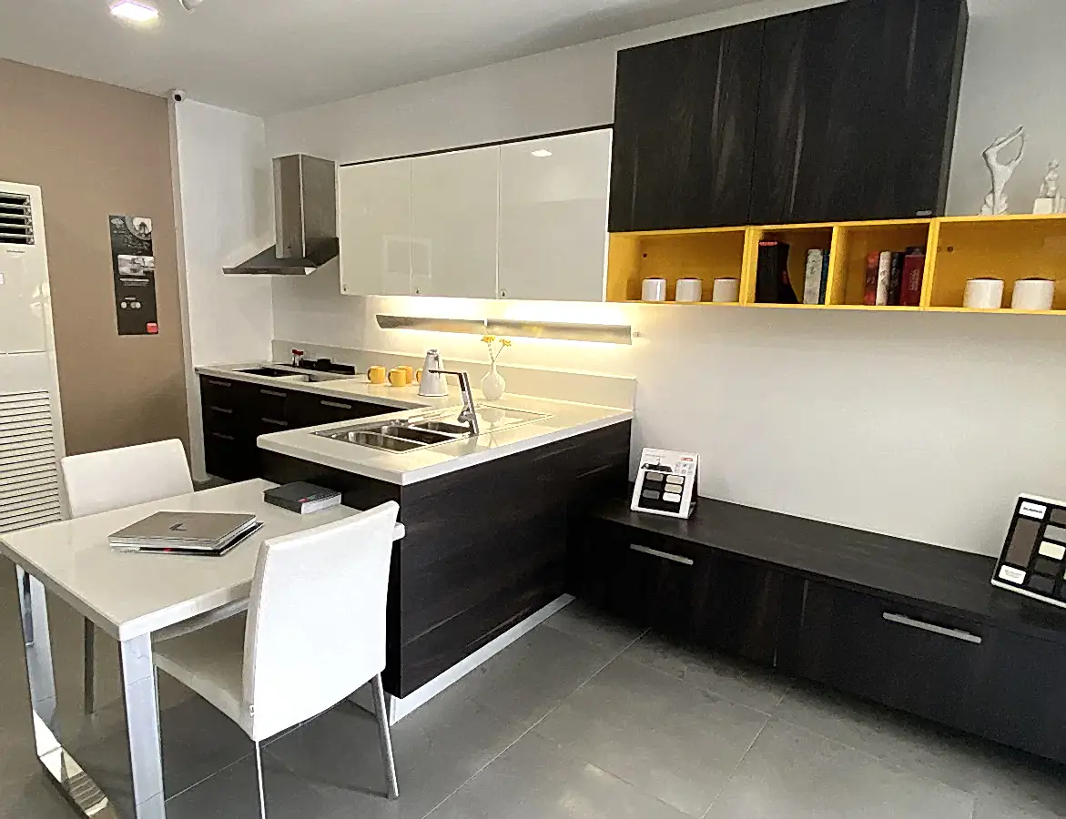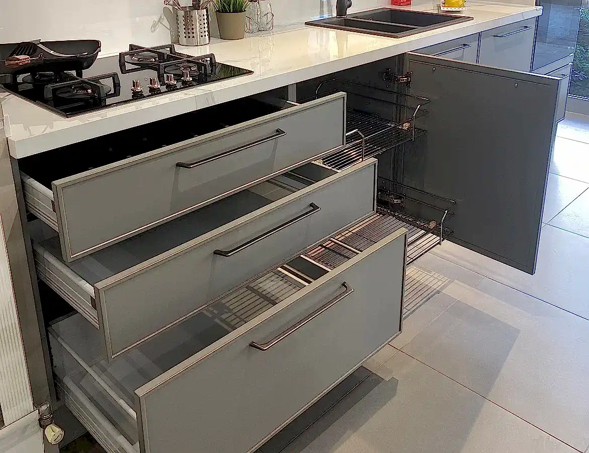 Tezgah ve Cihazlar: Silestone Tezgah , Duvar kaplaması, Franke /Evye, Batarya, Franke /Tam ankastre bulaşık makinası fiyata dahildir.