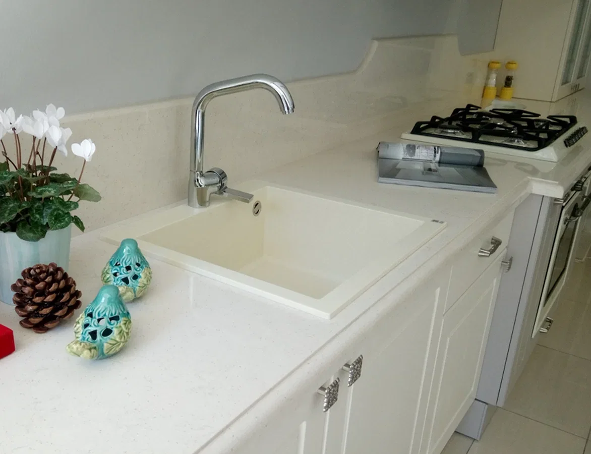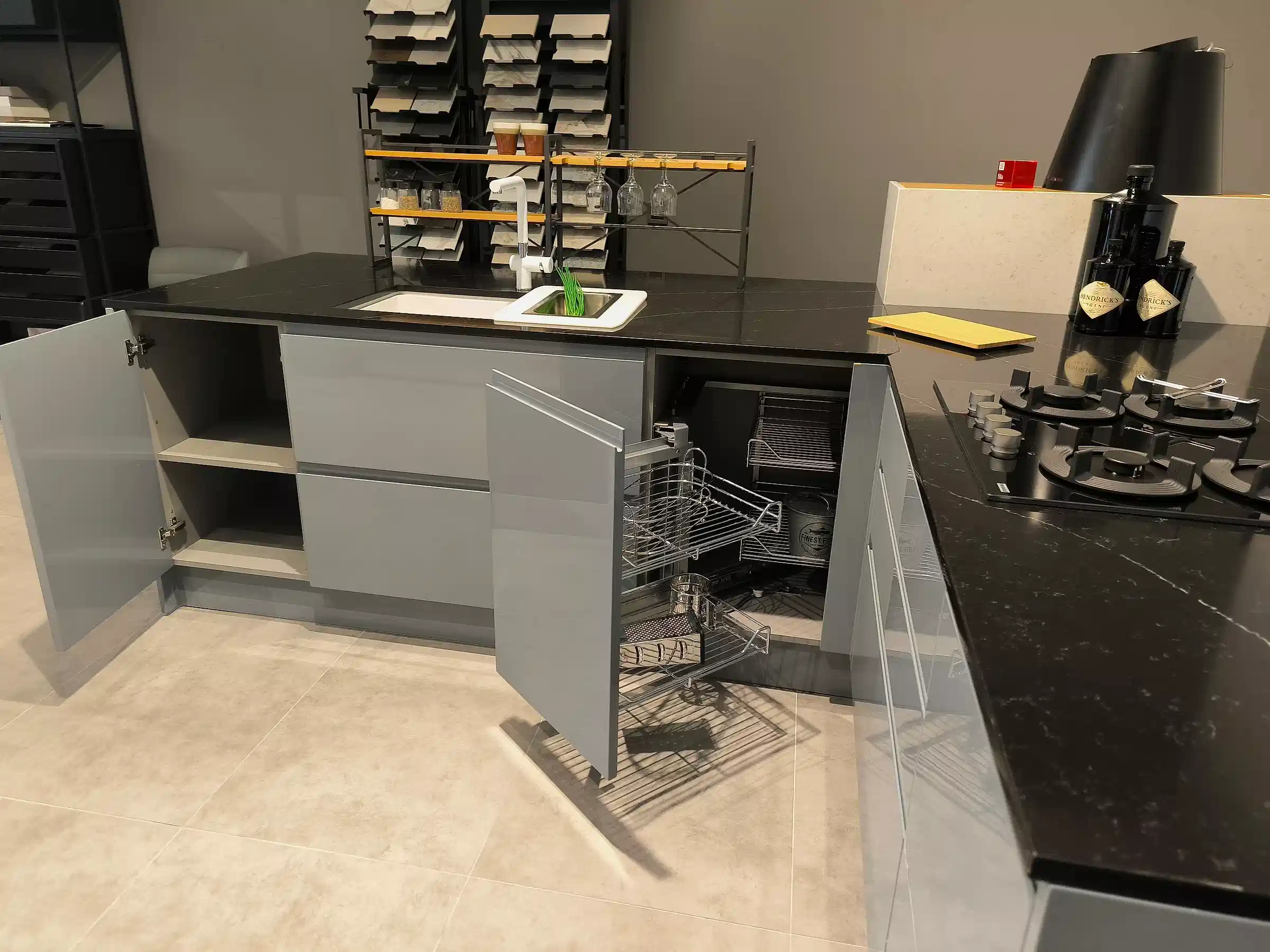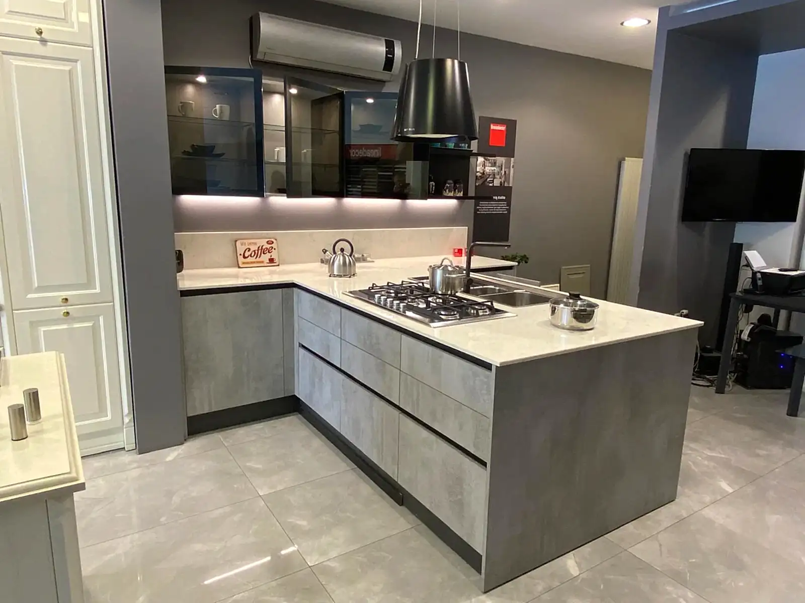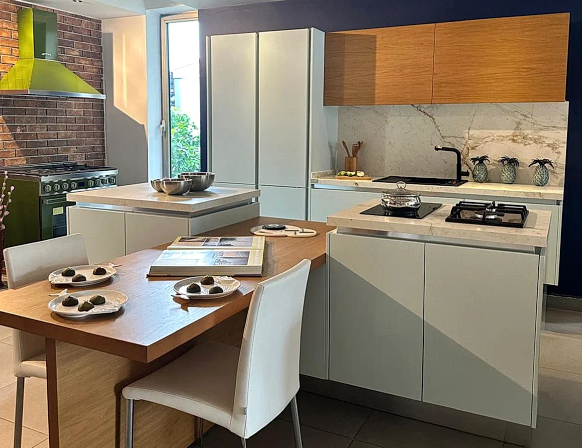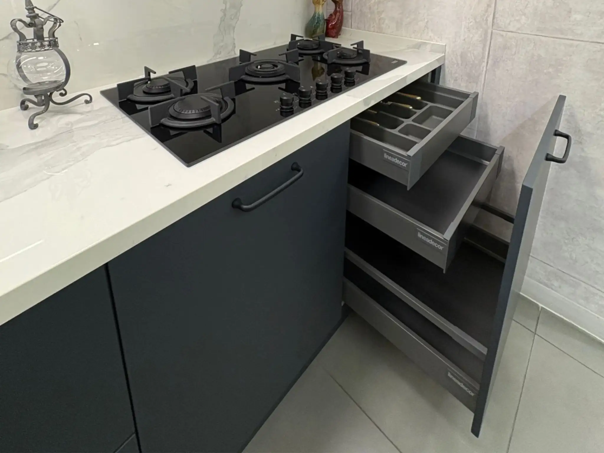 Tezgah ve Cihazlar: Silestone Tezgah , Duvar kaplaması, Franke /Evye, Batarya, Franke /Tam ankastre bulaşık makinası fiyata dahildir.