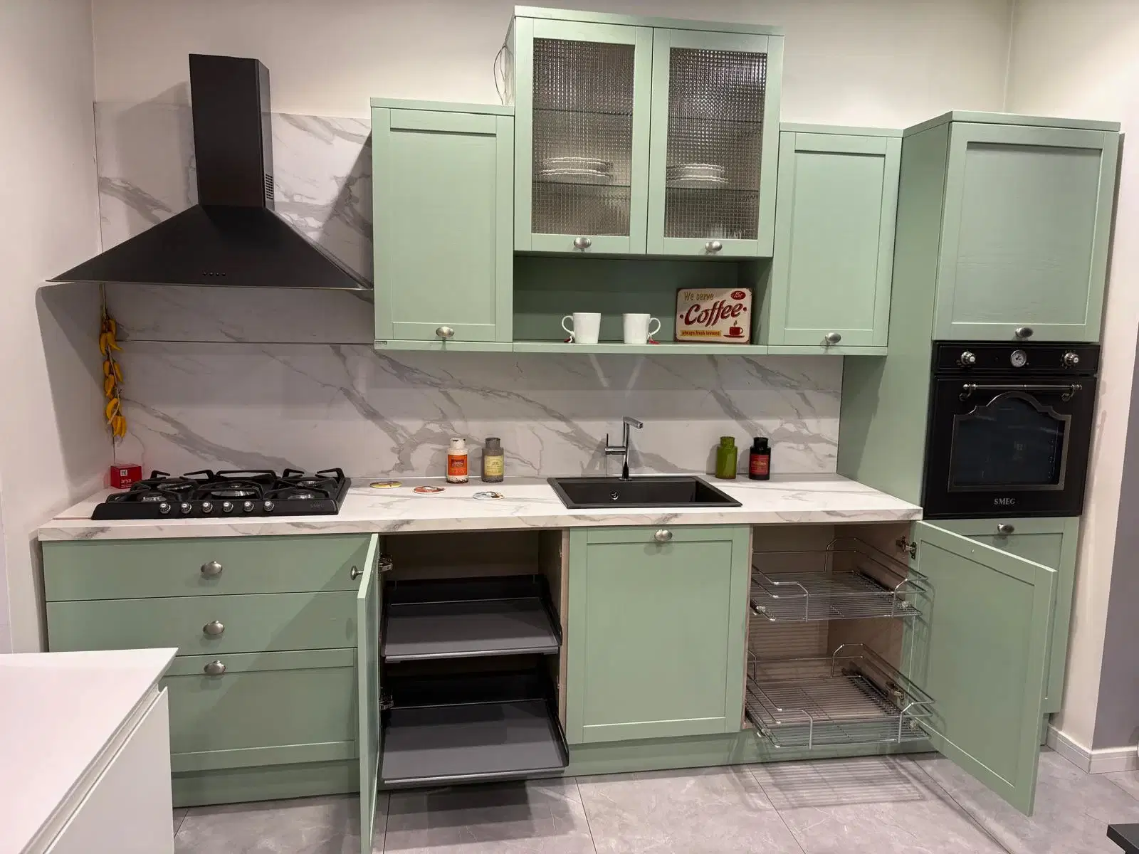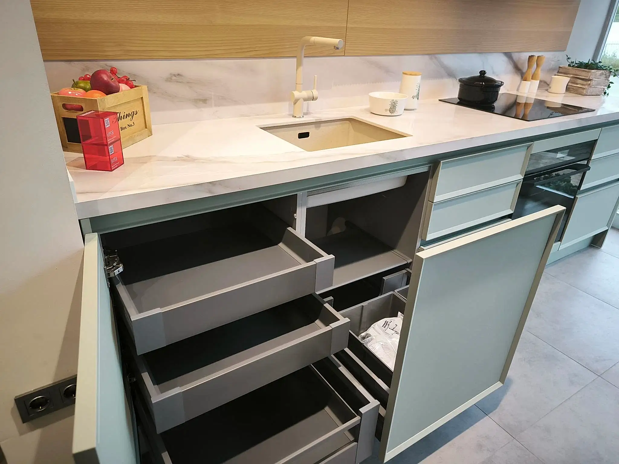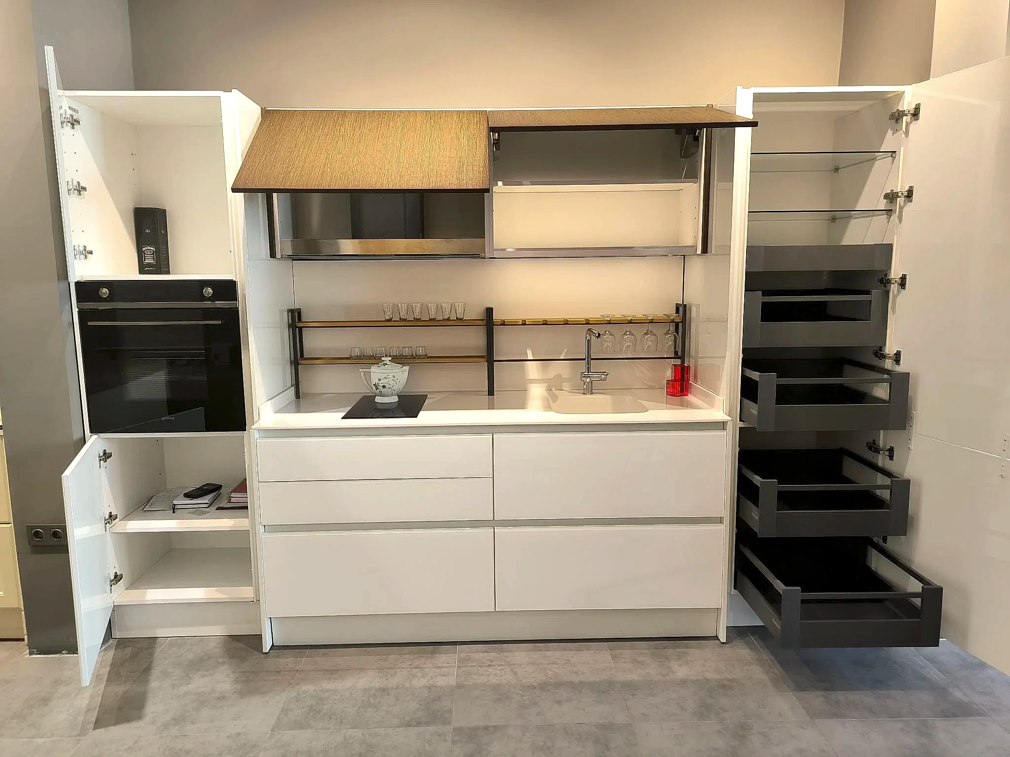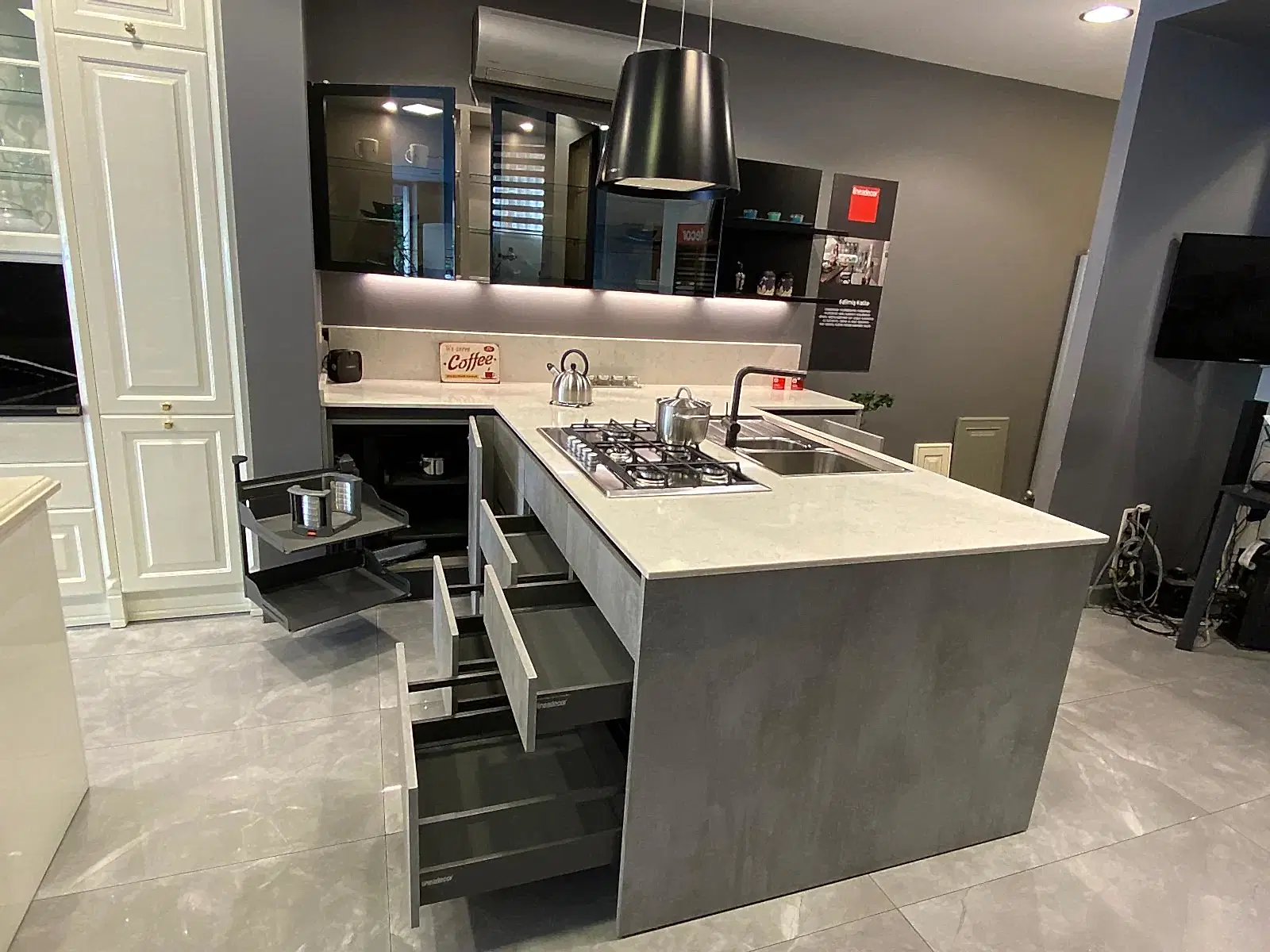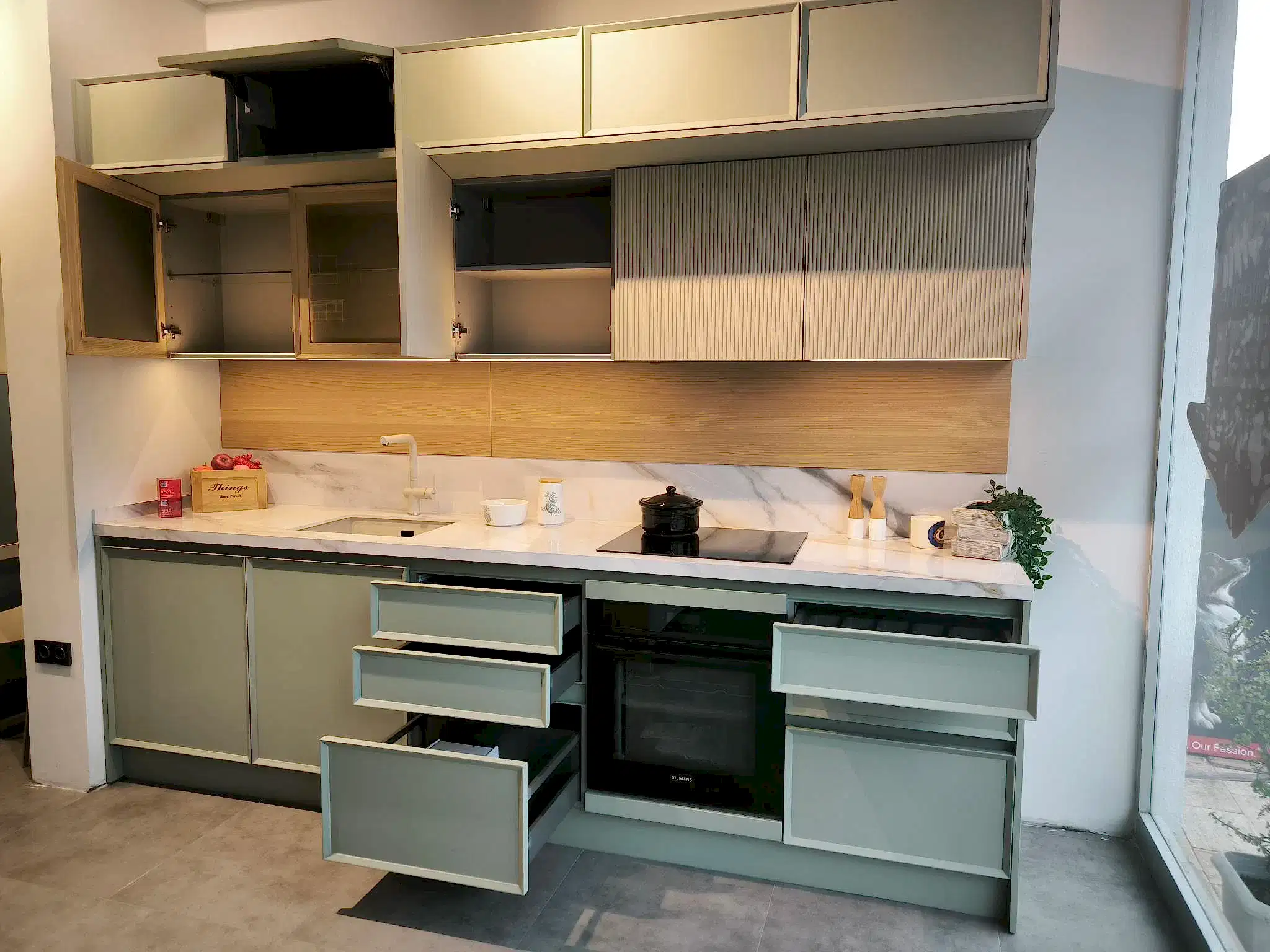 Tezgah ve Cihazlar: Silestone Tezgah , Duvar kaplaması, Franke /Evye, Batarya, Franke /Tam ankastre bulaşık makinası fiyata dahildir.