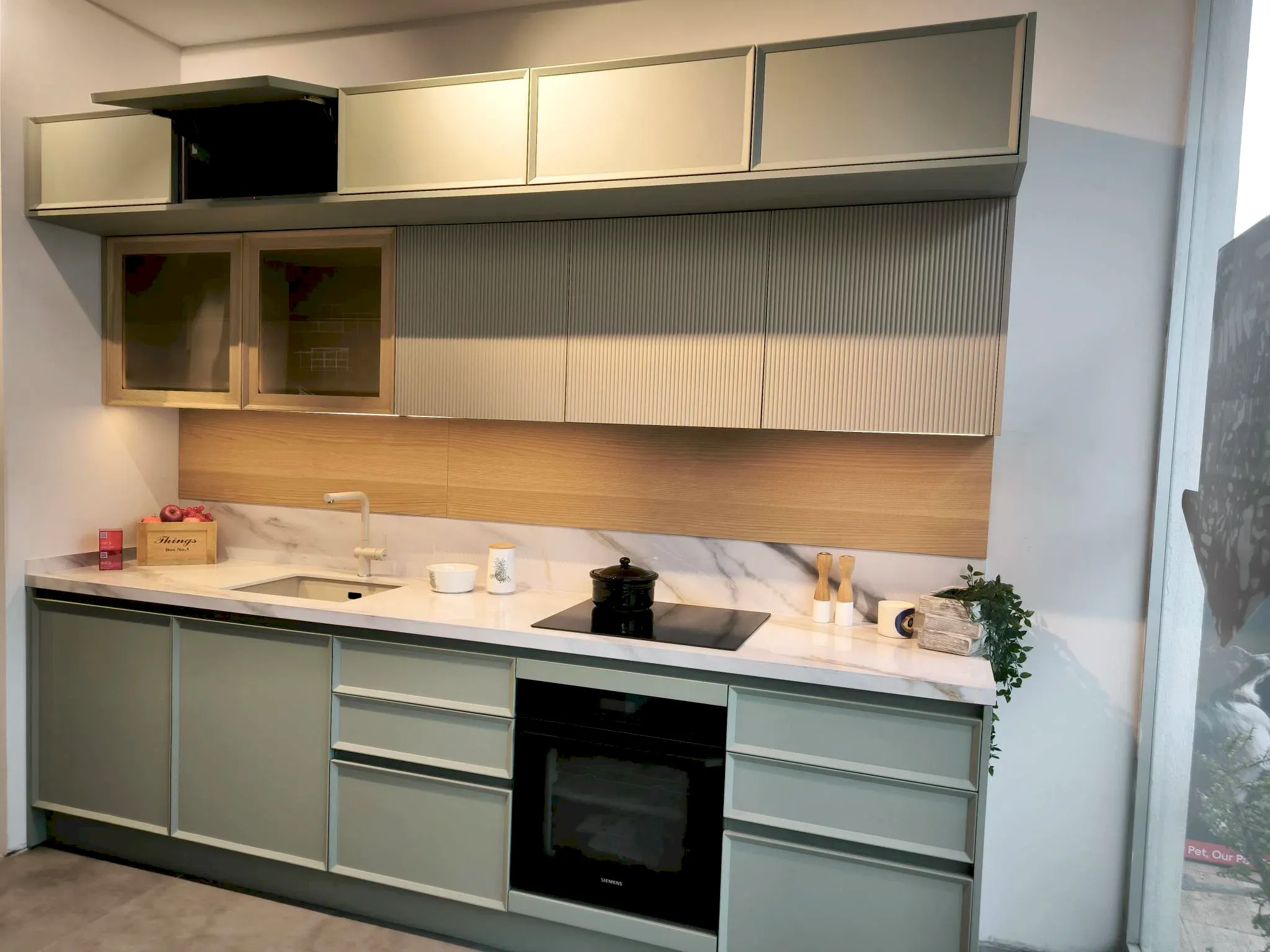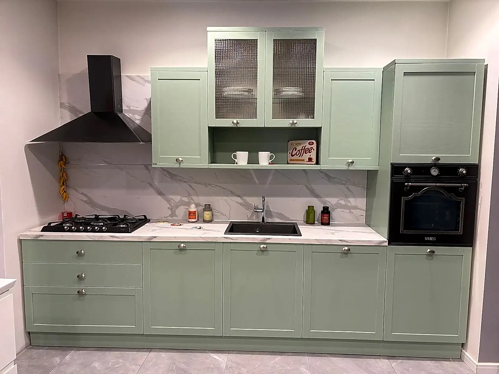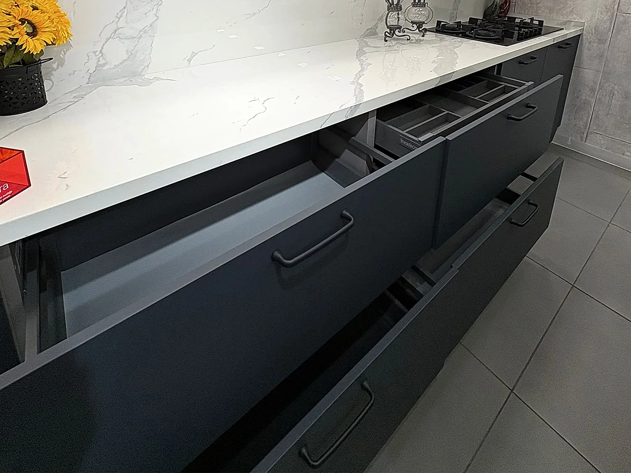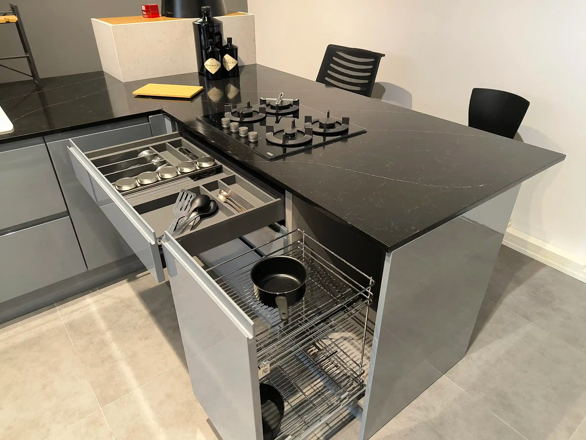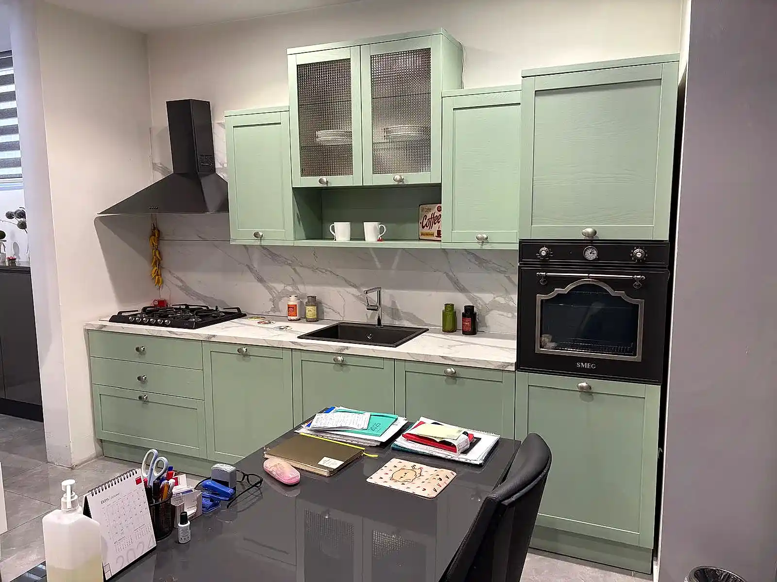 Tezgah ve Cihazlar: Silestone Tezgah , Duvar kaplaması, Franke /Evye, Batarya, Franke /Tam ankastre bulaşık makinası fiyata dahildir.