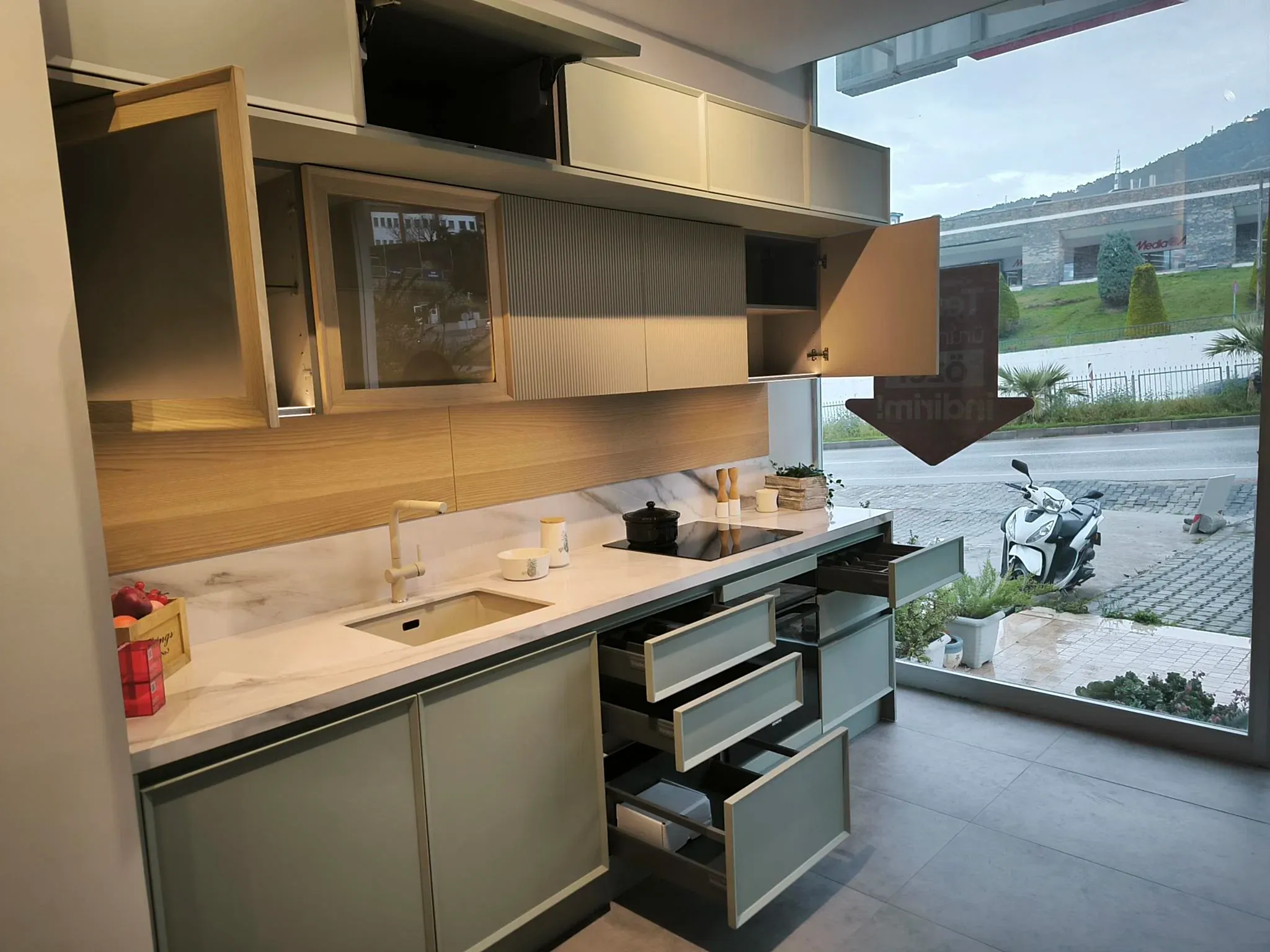 Tezgah ve Cihazlar: Tezgah, eviye, batarya, ankastre cihazlar fiyata dahil değildir.