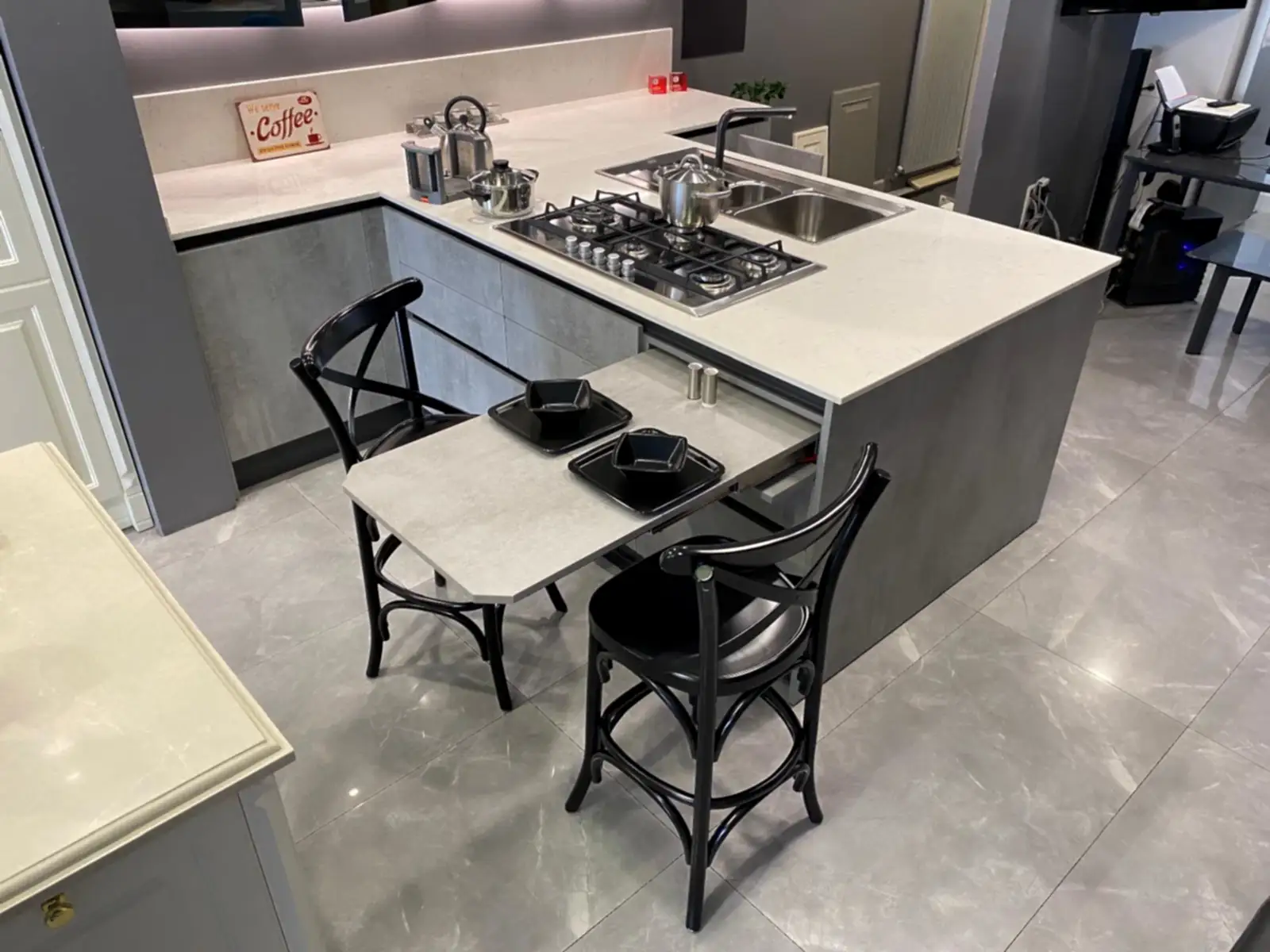 Tezgah ve Cihazlar: Masa ve Sandalyeler Fiyata Dahil Olup & Tezgah, eviye, batarya, ankastre cihazlar fiyata dahil değildir.